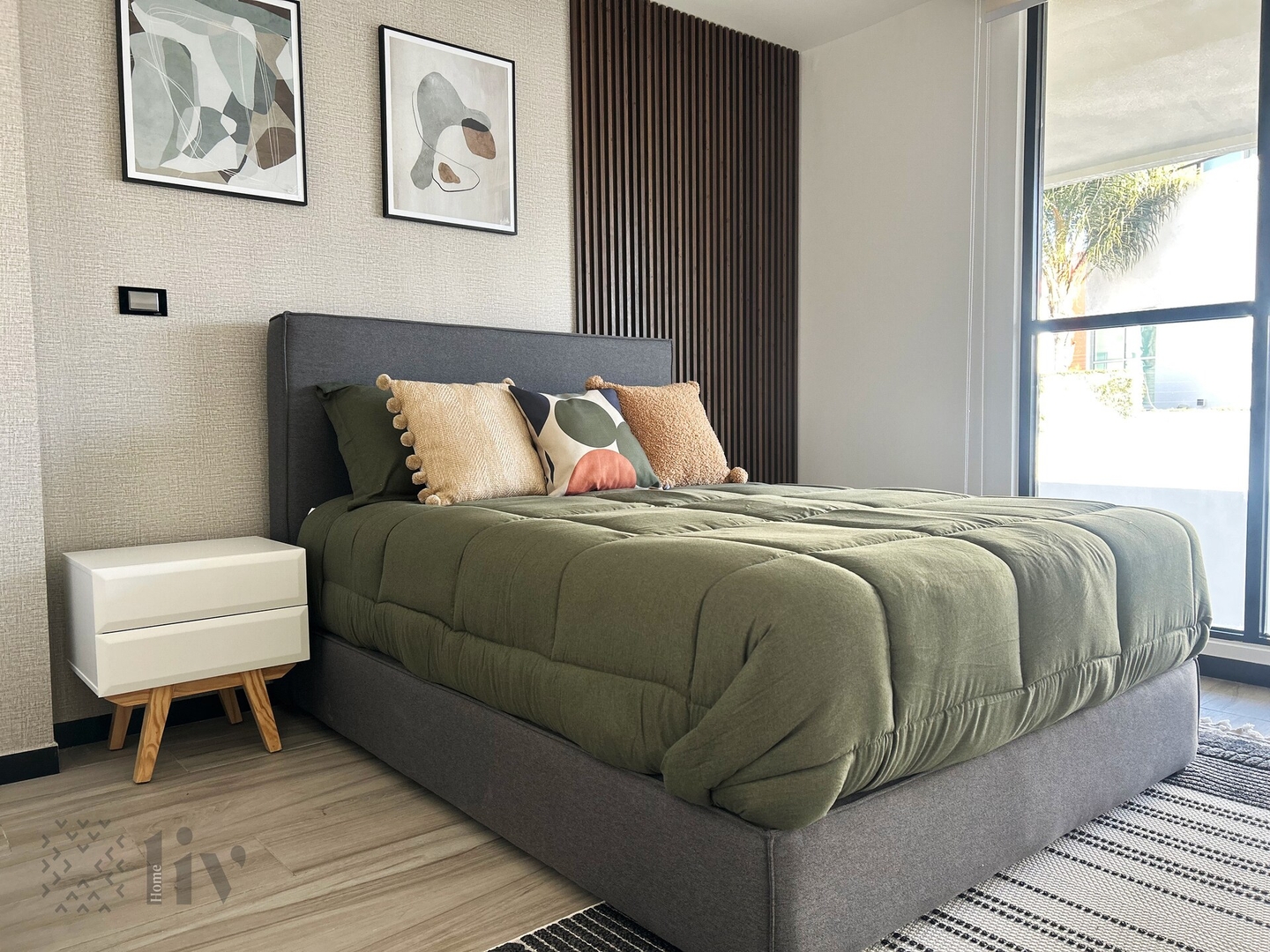 En el segundo nivel, la recamara principal con cama queen size, con vestidor y baño, una recamara matrimonial con baño completo y otra recamara matrimonial con baño completo y una sala de tv con sofá cama matrimonial.