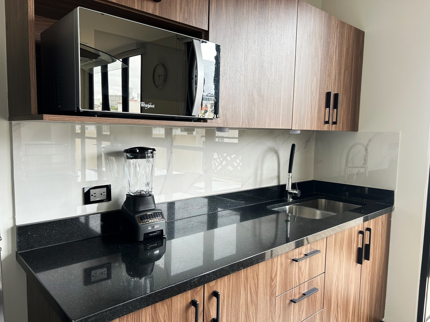 El departamento se encuentra en el segundo nivel del edificio, es de un solo nivel, cuenta con sala comedor, cocina completamente equipada, cuarto de lavado con lavadora y secadora, cuarto de servicio con baño completo y un toilet.